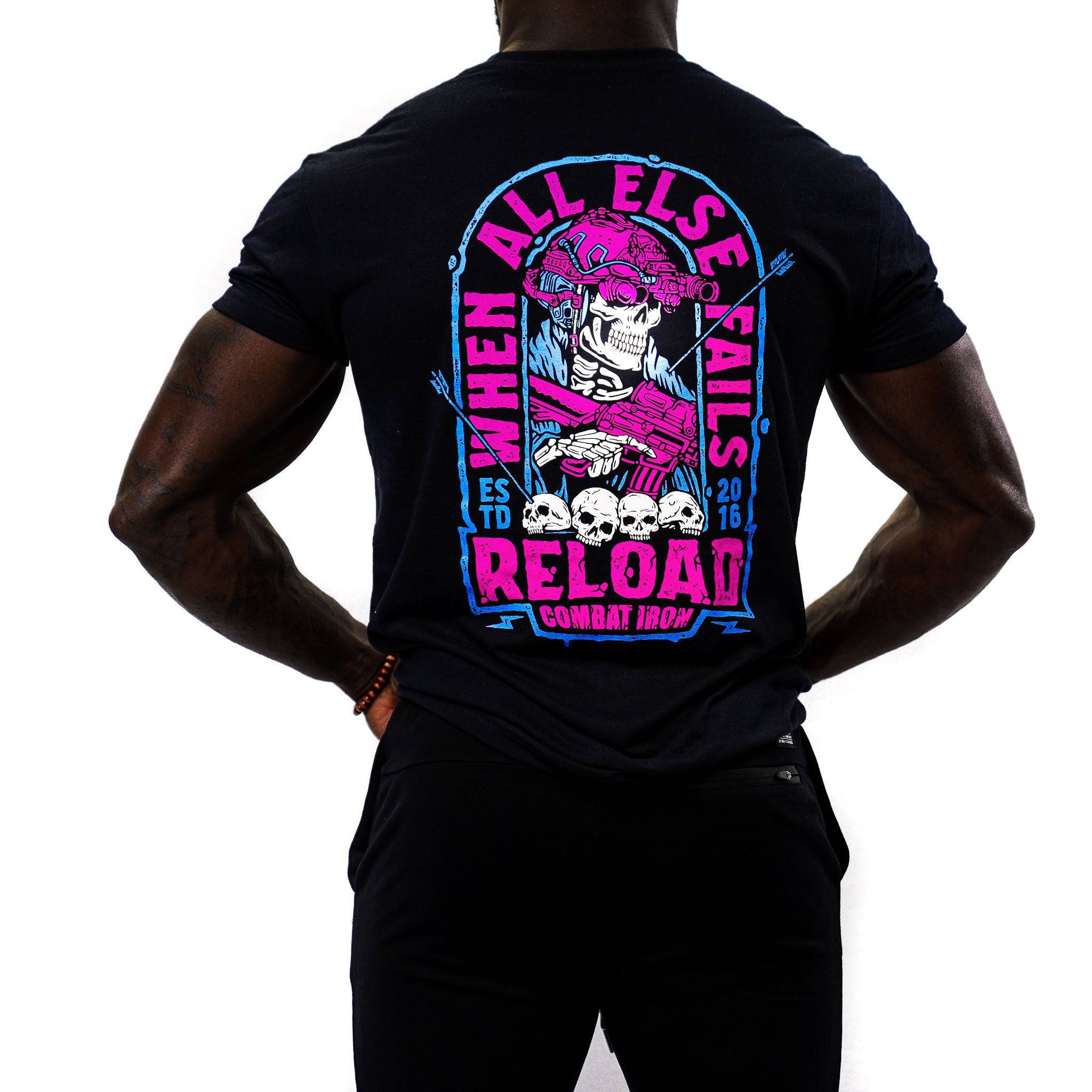 For the hardened Patriots out there that knows when shit goes bad, it goes really bad. There is always one choice however "When All Else Fails Reload". "Veteran designed Operator style print with a bright, Miami color pattern front and back display. This is the perfect tee for the shooting range, gyn, night out in town or to show off to your buddies.